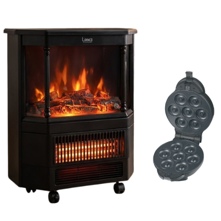 اجعل صباحك أكثر دفئًا ولذّة مع باقة Lexa المميزة التي تجمع بين مدفأة Lexa الكهربائية الأنيقة و صانعة الحلويات 4×1. صُمّم هذا الثنائي ليمنحك أجواءً منزلية مريحة وطابعًا فاخراً يجمع بين الدفء والطعام الشهي.