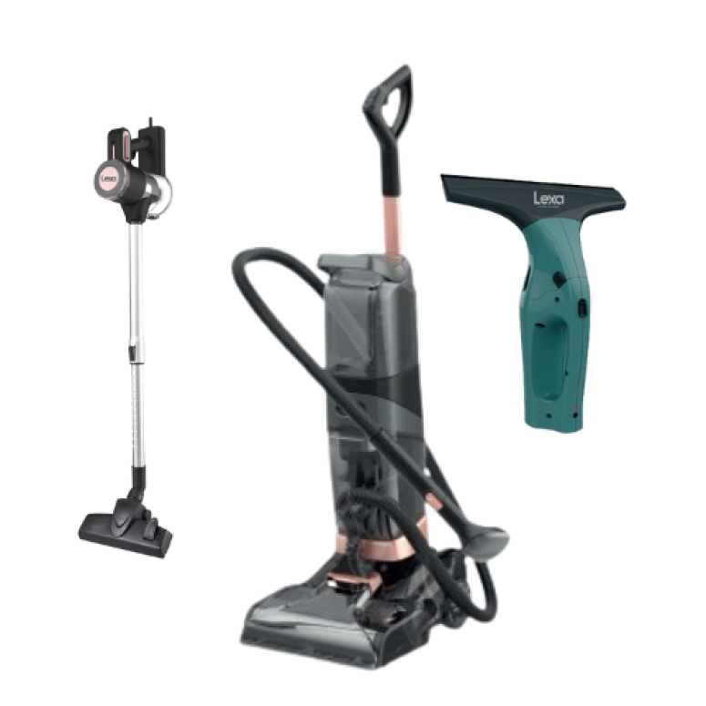 اجعلي منزلك في أبهى صورة مع باقة طوفان النظافة من Lexa، التي تجمع ثلاثة أجهزة تمنحك تنظيفًا مثاليًا بلا مجهود: