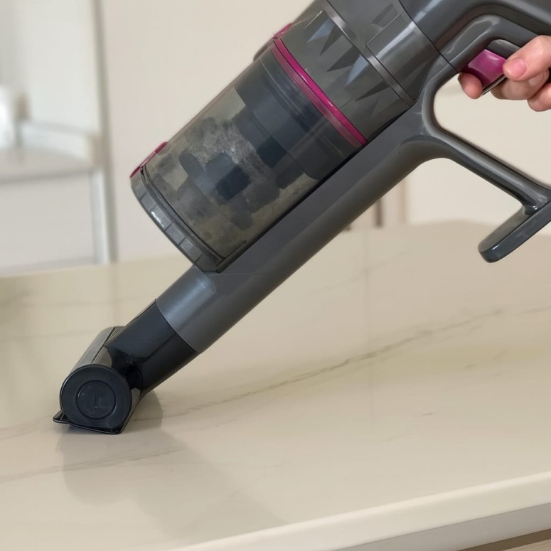 تعمل المكنسة ببطارية ليثيوم قابلة للإزالة بسعة 2500 مللي أمبير، تدوم حتى 70 دقيقة من التشغيل المتواصل، مع قوة شفط تصل إلى 30 كيلو باسكال لإزالة أصغر ذرات الغبار.